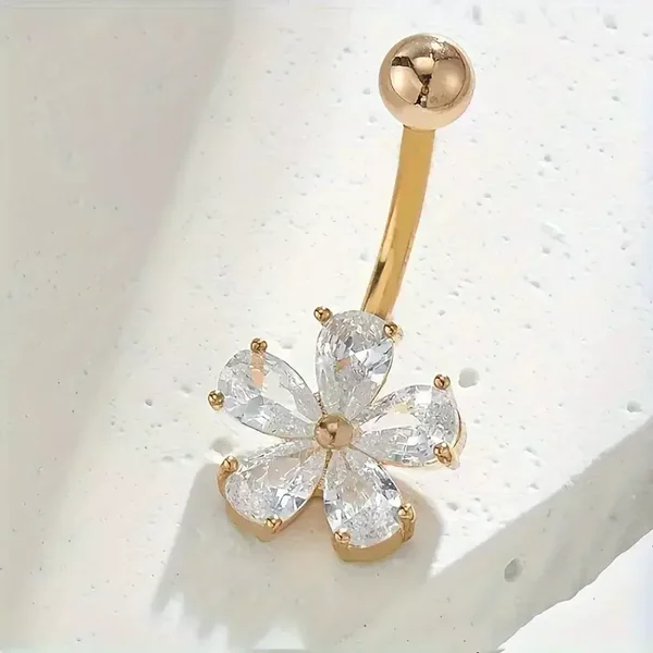 Fleur Zircon Nombril Anneau Nombril Piercing Goujon Barre